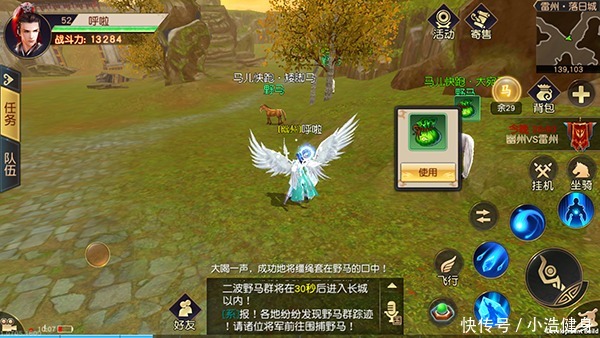 军马分为三个等级,棕色,白色,还有红色的汗血宝马,不同等级的马获得的宝箱是不同的,宝箱可获得马草、兽魂、经验丹、银票等等。