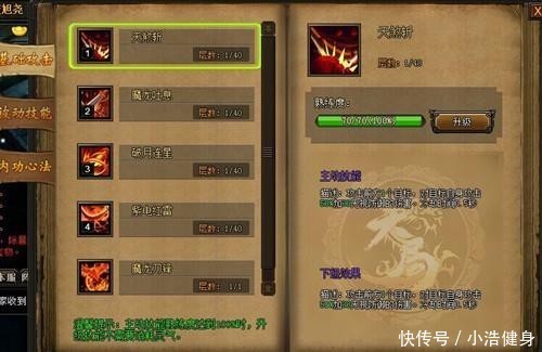 内功心法属于特殊的技能种类,玩家得到相应心法后即可升级,内功心法将加强玩家角色的修为,永久增加玩家角色属性。