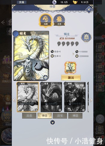 而比异兽更加高级的是神兽,一旦玩家拥有一只神兽助里,那么战力就会急剧飙升。