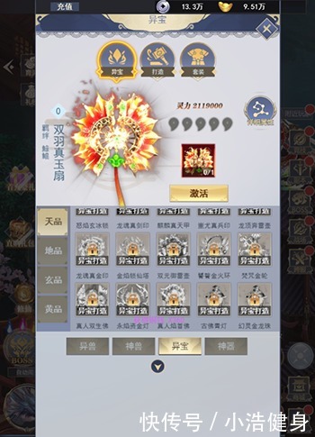 在游戏设定中异兽也是能穿戴装备宝物来提升异兽的战力的,异兽穿戴的装备也叫异宝。而异宝也有分四个不同阶级适应不同阶段的玩家。(天品>地品>玄品>黄品)