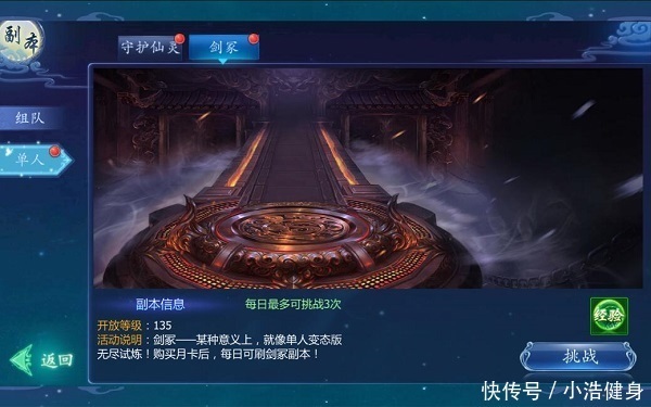 【介绍】:在日常界面进入,完成挑战即可获得经验,对于前期来说经验也是相当丰厚,等级越高经验越多,还可以使用仙玉购买挑战次数,获得更多经验。