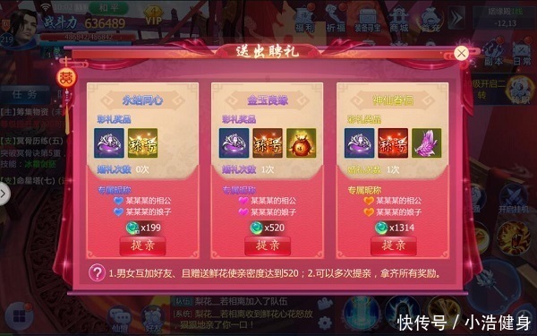 【时间】:需到红娘提亲,预约婚礼或者在主界面申请参加他人的婚礼