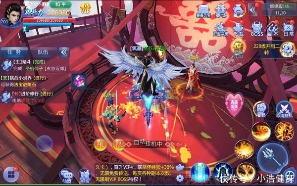 【介绍】:等级达到220级,各位道友可召集盟友守护神女,共同低于来犯敌人,每击杀一只怪物,场景内所有道友都可以获得海量经验,活动存在两个护法,当护法存活时,全体道友获得经验加成(也可以使用多倍经验丹提升经验的获取),仙盟女神不被击败,直到活动结束则挑战成功,神女被击杀则活动结束。