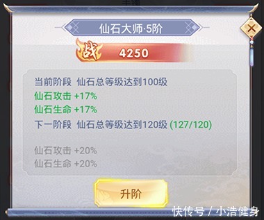 当玩家所有仙石的总等级达到一定要求时即可进行仙石大师的升阶操作。仙石大师升阶能为主角增加大量属性。