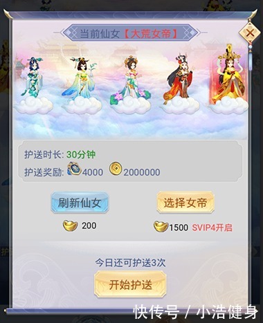 每日10:00-24:00护送仙女任务开启,玩家可以通过刷新的方式挑选奖励更为丰厚的护送任务!
