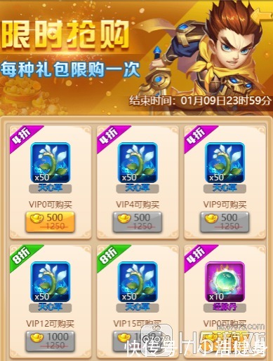 首先介绍限时抢购,三天一次的限时抢购是4折的,是最便宜的,转生材料是必买的,后期需要太多。