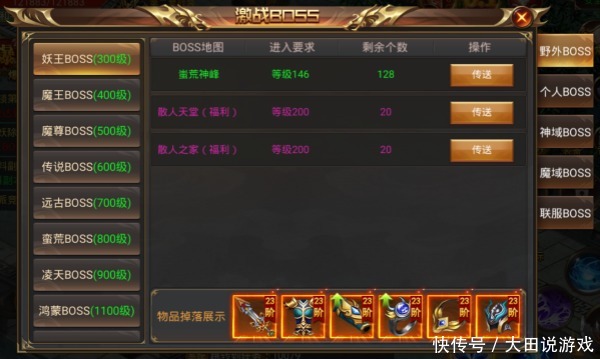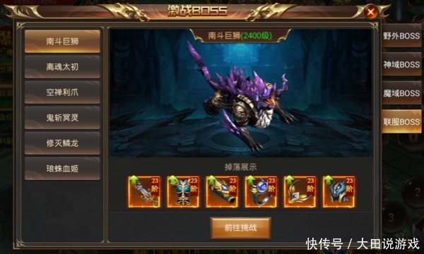玩家在此处可以直观的了解到每一个联服BOSS的名字、BOSS的等级,玩家可以自行选择前往挑战。
