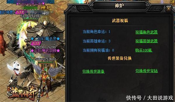 祝福油是一种神奇药水,有一定几率能提升手中武器的幸运值,玩家可祝福角色武器,也可祝福英雄武器。武器的初始祝福值为0。当武器的幸运值越高时,伤害也越高。而当人物幸运值达到9时,每次攻击都能获得极大的伤害。祝福油可以到商城内去购买,打BOSS时也会有机会掉落。